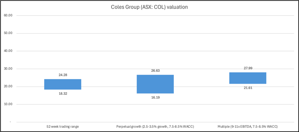 Extending the Coles three statement model into a discounted cash flow. Main goal was to implement some iterations on the workpaper to include both perpetual growth and implied multiple, multiple and implied terminal growth rate.